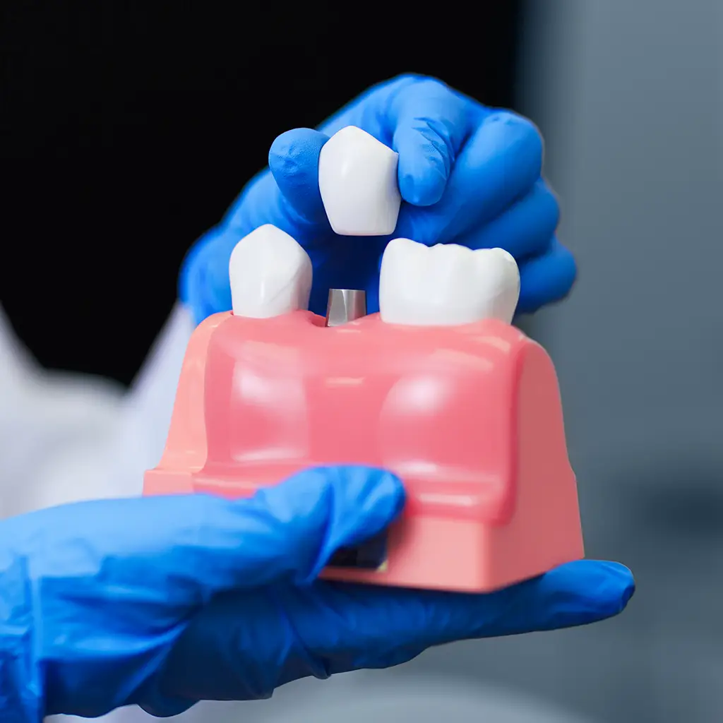 Nach der Heilung wird eine künstliche Krone auf das Implantat gesetzt, um den Zahn zu vervollständigen.