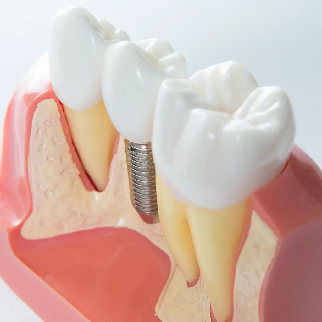 Ein Zahnimplantat ist eine künstliche Zahnwurzel aus Titan, die in den Kieferknochen eingesetzt wird. Auf diesem Implantat wird eine Zahnkrone befestigt, um fehlende Zähne zu ersetzen.